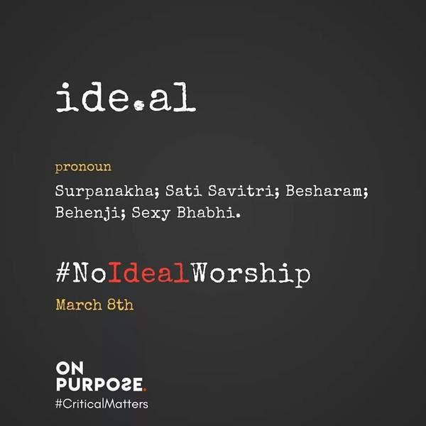 To mark International Women's Day, a tweetathon, a guest blog series, and a social media quote series were organised on how the rule-book of a ‘sanskari’ (ideal, values-driven) woman is being challenged in India. Responses to the ‘ideal woman’ stereotyping were invited from activists and artists. The replies were eye-opening - I led the campaign strategy, content, design outlines, submissions, and social media promotion.