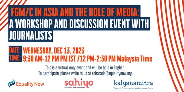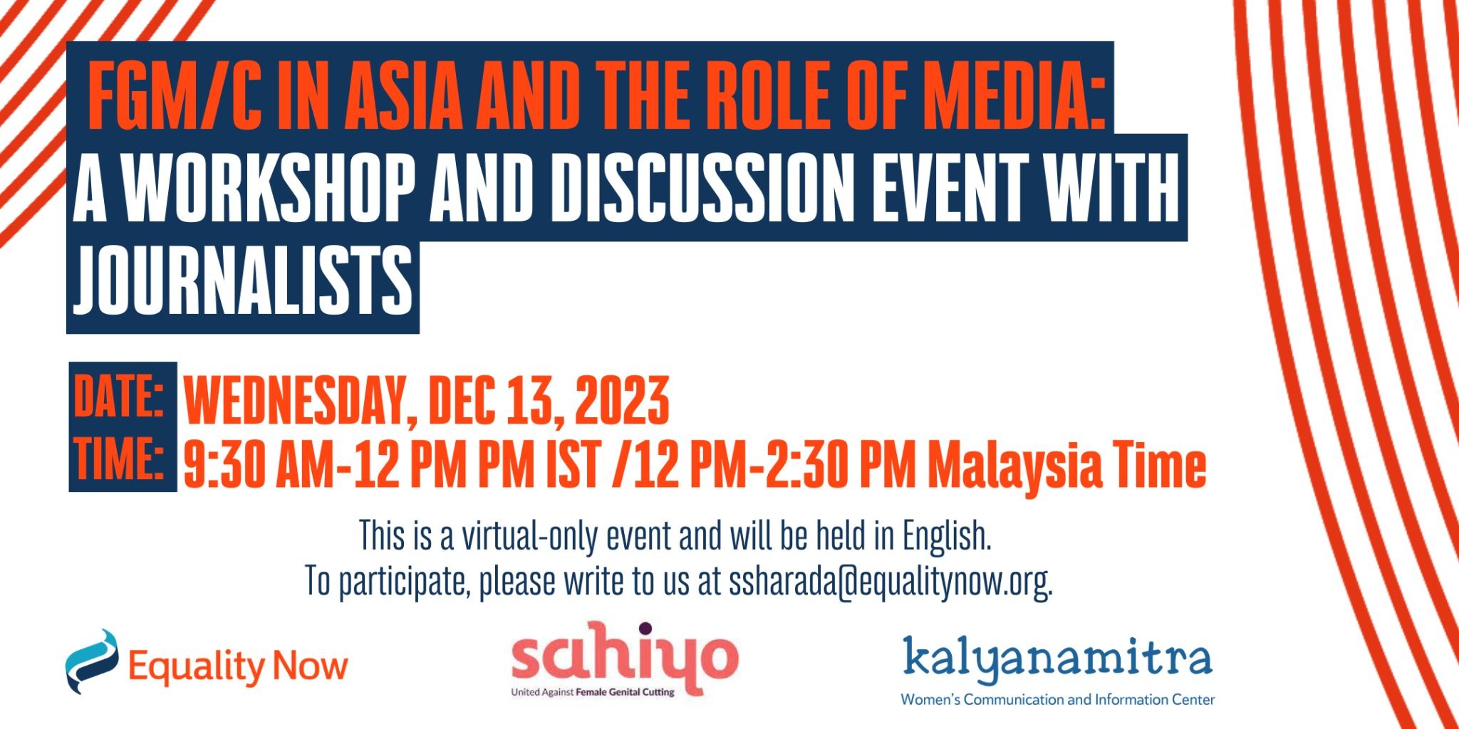 Social Media Campaign in Support of FGM/C in Asia and the Role of Media - A Workshop and Discussion Event with Journalists in collaboration with Sahiyo, Yayasan Kalyanamitra, and Equality Now - as the South Asia Communications Consultant and Global Communications Lead of the Ending Harmful Practices (EHP) Campaign at Equality Now